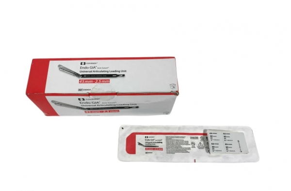 The new single use loading units Tyco Auto Suture Endo GIA Universal titanium staples. 6 cm linear length and 2.5 mm wide.