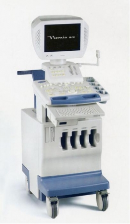 Used in great condition Toshiba Nemio 10 ultrasound machine with 2 transducers. The included transducers are PLM-1204AT 12 MHz and PVM-375AT 3.75 MHz. This machine has a manufacture date of April 2003. Product Description: Toshiba NEMIO 10 Ultrasound System : This flexible compact system delivers superb grayscale image quality, facilitated by the same digital beamformer technology available on all of the Nemio systems. Its ergonomic design provides simplicity and efficiency. And with its highly scalable platform, your diagnostic capabilities can be enhanced to conform to your expanding clinical needs. System Highlights: Touch customizable console Programmable pop-up menus, screen layout and interface 16 user-defined presets User-programmable measurements Convex and linear transducer capability Two active transducer ports, plus two resting ports Read and write zoom Cine memory Floppy disk drive Fully digital continuous beamformer
