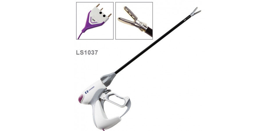 The LigaSure Atlas tissue fusion laparoscopic instrument (LS1037) is a blunt tip vessel sealer and divider, featuring a 37 cm shaft for use in laparoscopic procedures.